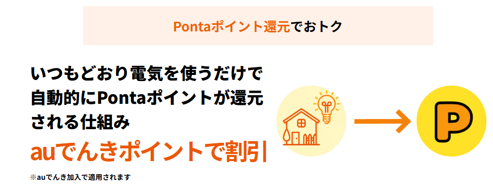 auでんきは毎月の電気料金に応じてPontaポイントが還元されるのが特徴です。